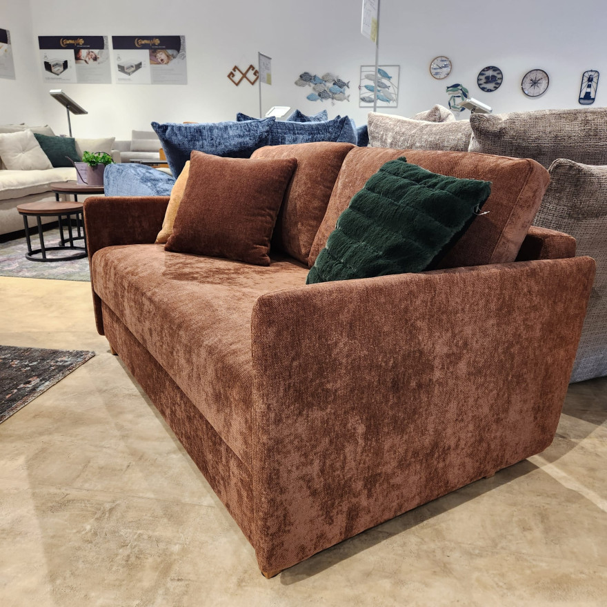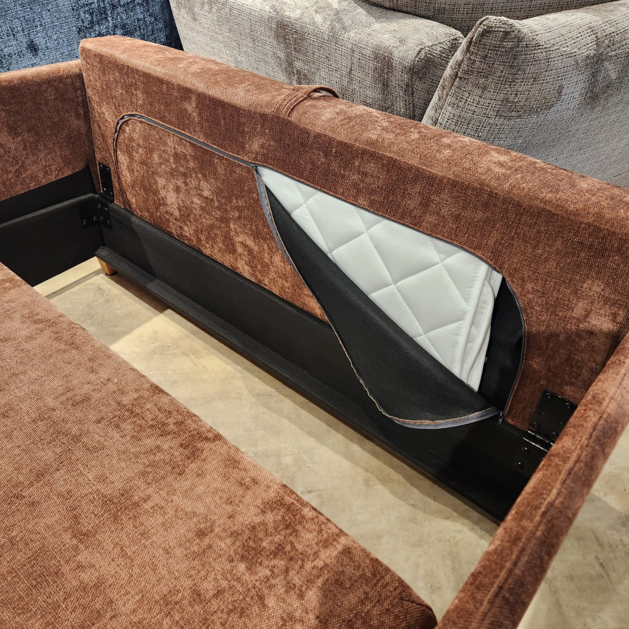 Dīvāns SMARTY – kompakts, bet ar lielu guļamo platību 140×200 cm. Komplektā iekļauts papildus virsmatracis.