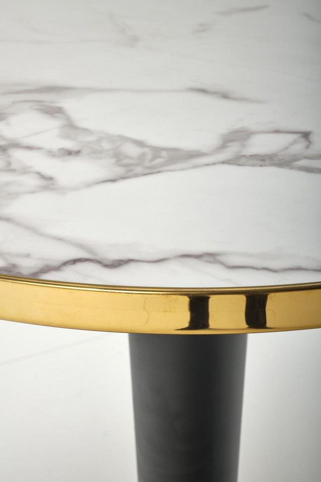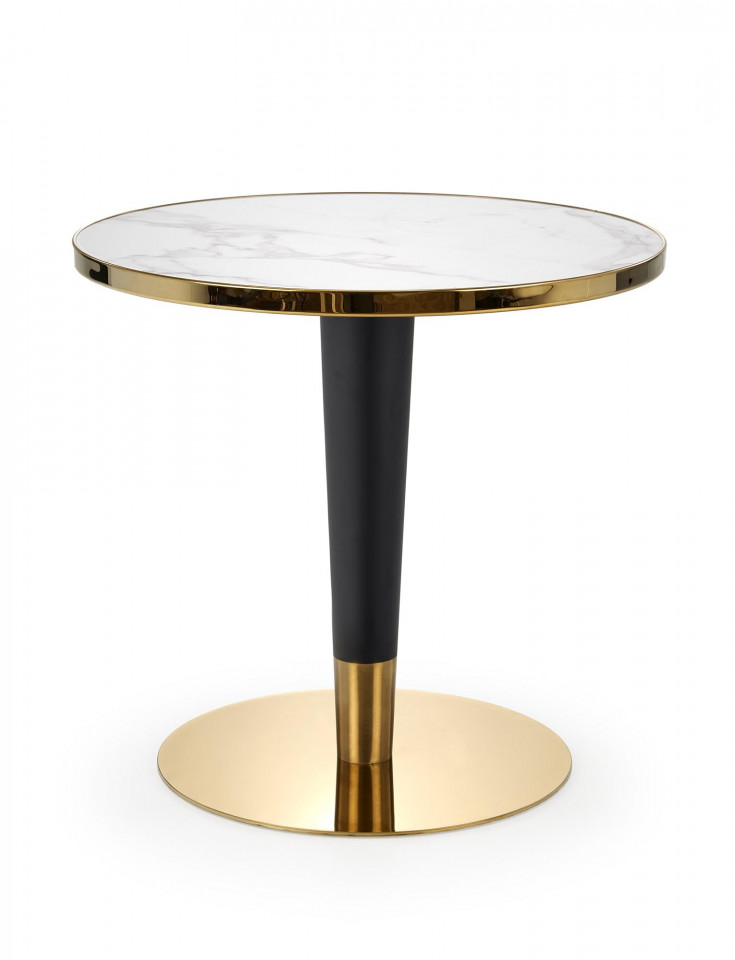 izmēri: D79cm, H74 cm, materiāls: keramika / pulverkrāsots tērauds / nerūsējošais tērauds, krāsa: augšdaļa - balts marmors, kājas - melns / zelts